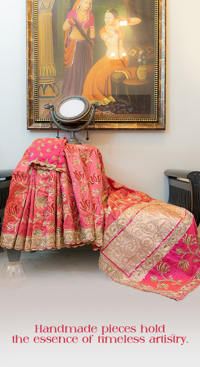 Ritu Surana’s design philosophy is a harmonious blend of tradition and innovation, where each creation is a tribute to the timeless elegance of handcrafted textiles.