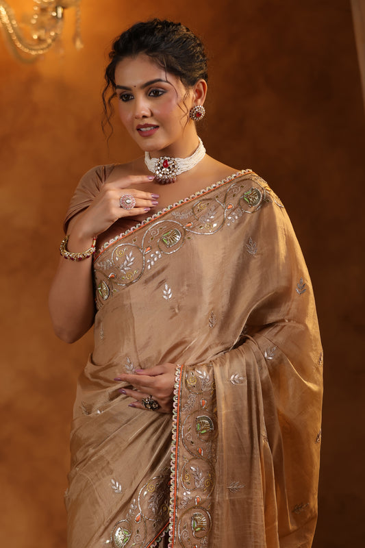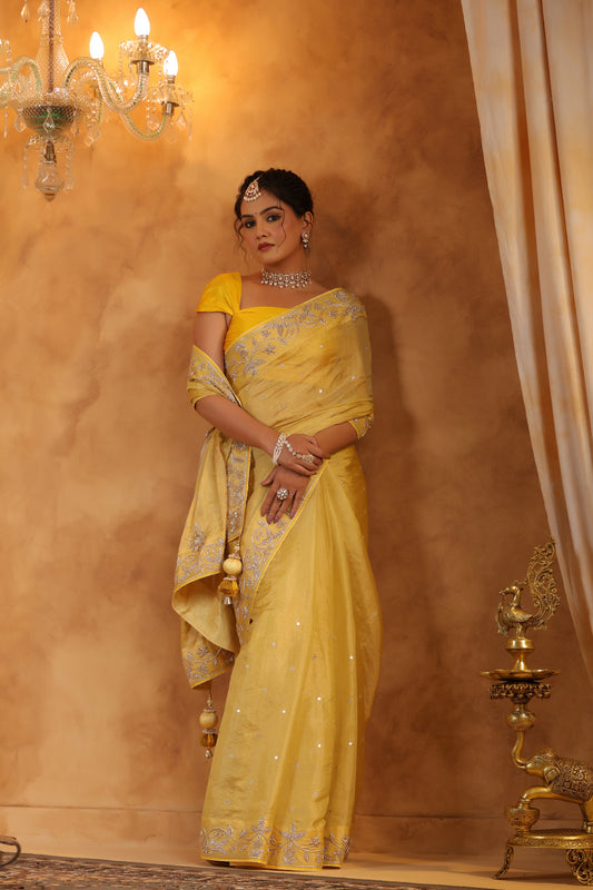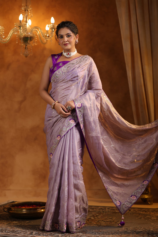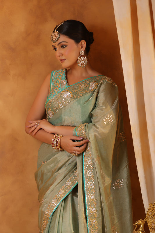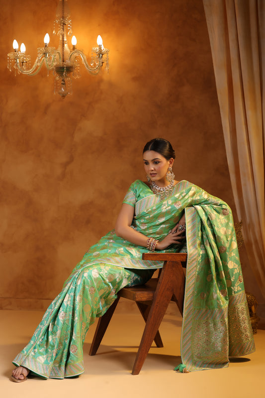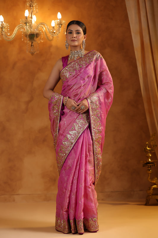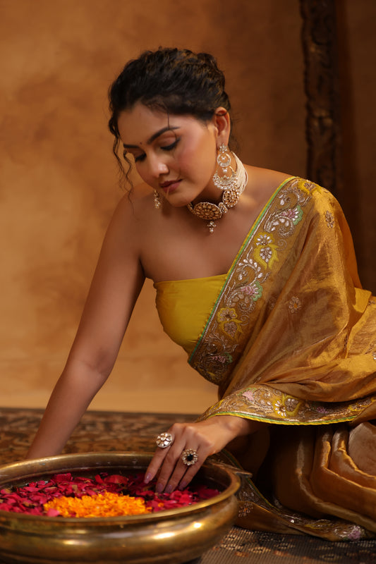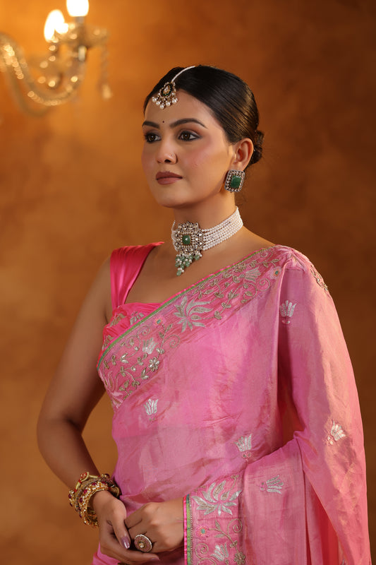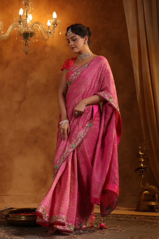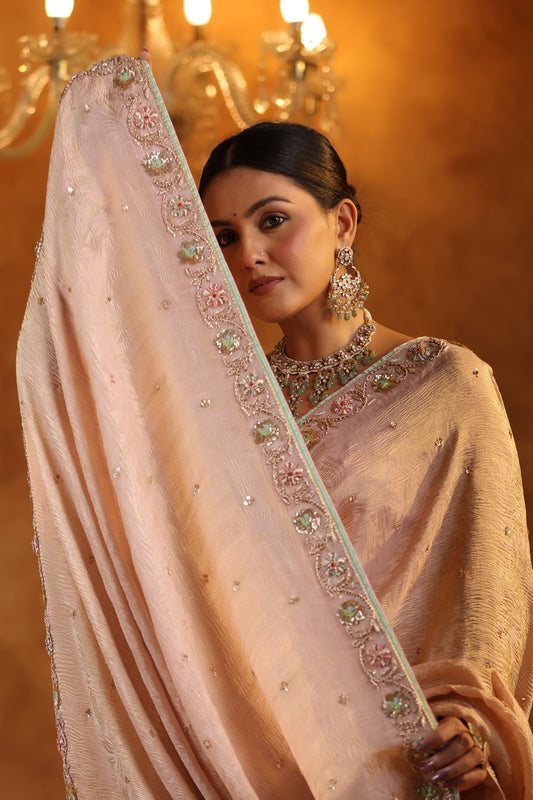Gulabi Sona Jacquard Crush Tissue Saree Set