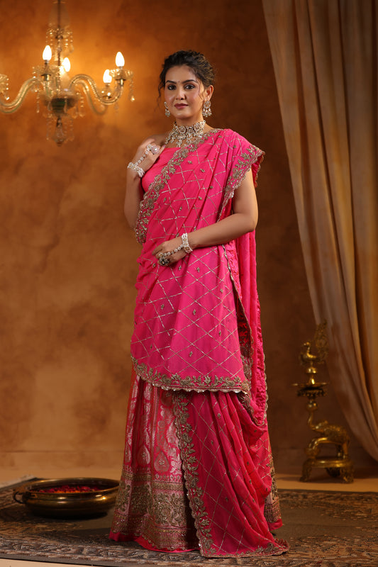 Pink Banarasi Lehenga with Intricated Zardozi Georgette Dupatta